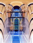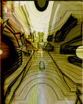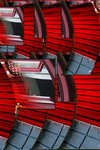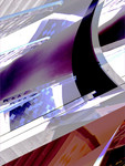 2005Vervorming van het trappenhuis van het Gymnasium Haganum in Den Haag. Paarse kleurelementen toegevoegd en hier en daar kleuren geïnverteerd.