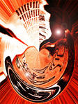 2006Abstracte voorstelling. Lijkt een beetje op schreeuwende schedels. De oorspronkelijke foto: een gewelf boven een wenteltrap.