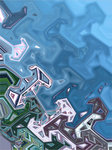 2005Zo ver doorvervormde foto, dat niets meer herkenbaar is. Ik vind het lijken op een soort kristallen. Daarbij denk ik al gauw aan systematiek. Dat bracht me op de gedachte van werktuigen, en van werktuigen kwam ik tot Industriele Revolutie. Vandaar de titel van dit werk (het moest toch één titel hebben?)
