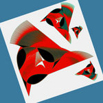 2005Tijdens experimenten met Escher-achtige motieven kwam ik op een aantal vormen uit die dezelfde rasterbasis hadden, maar met een beetje afwijkende kleuring een heel verschillend uiterlijk kregen.